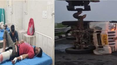 "पुलिस से बचने की कोशिश में गौतस्करों की पिकअप पलटी, एक मृत, एक घायल"