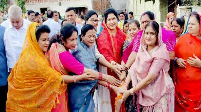 महिलाओं ने धरना दिया, भजन-कीर्तन के साथ विरोध प्रदर्शन