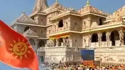 नववर्ष पर श्रीराम मंदिर के शिखर पर नया ध्वज, गूंजा ‘जय श्रीराम’