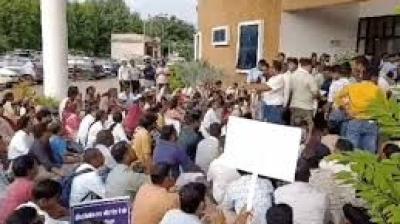 महिलाओं ने धरना दिया, भजन-कीर्तन के साथ विरोध प्रदर्शन
