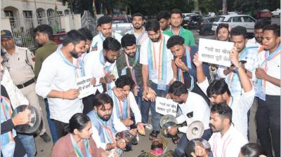 ड्रग्स रैकेट के खिलाफ विरोध में NSUI का नाटकीय अंदाज़, कुंभकरण बनकर किया प्रदर्शन