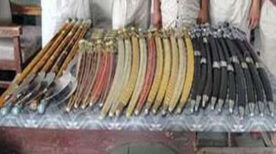 सागर जिले के बीना जंक्शन पर जीआरपी पुलिस ने सोमवार को श्री गंगानगर एक्सप्रेस ट्रेन से उतरे एक रेल यात्री के पास से भारी मात्रा में धारदार हथियार बरामद किए...