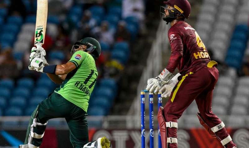 डकवर्थ लुईस नियम के तहत मिले 181 रन के लक्ष्य का पीछा करते हुए वेस्टइंडीज की शुरुआत भी खराब रही। 48 रन तक टीम ने ब्रैंडन किंग (1), एविन लुईस (7) और केसी कार्टी (16) के विकेट गंवा दिए थे। कप्तान शाई होप ने शेरफेन रदरफोर्ड के साथ चौथे विकेट के लिए 54 रन की साझेदारी निभाई। कप्तान होप 35 गेंद में दो चौके और एक छक्के की मदद से 32 रन बनाकर आउट हुए। वहीं, रदरफोर्ड 33 गेंद में चार चौके और तीन छक्कों की मदद से 45 रन बनाए। रोस्टन चेज और जस्टिन ग्रीव्स ने फिर 77 रन की नाबाद साझेदारी की और वेस्टइंडीज की टीम को जीत दिलाई। चेज 47 गेंद में चार चौके और दो छक्कों की मदद से 49 रन बनाकर और ग्रीव्स 26 रन बनाकर नाबाद रहे। पाकिस्तान की ओर से हसन अली और मोहम्मद नवाज को दो-दो विकेट मिले। वहीं, अबरार अहमद को एक विकेट मिला।