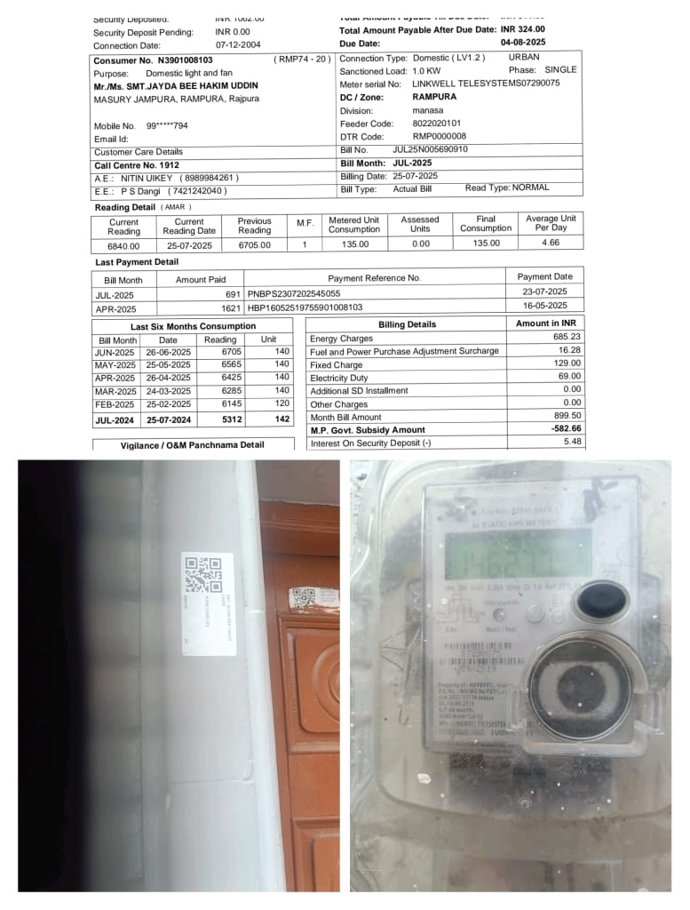 मध्य प्रदेश पश्चिम क्षेत्र विद्युत वितरण कंपनी लिमिटेड इंदौर के विद्युत सप्लाई केंद्र रामपुरा में गरीब उपभोक्ताओं के खपत से अधिक बिल दिए जाने के और अवैध वसूली करने के अनेक प्रमाणिक मामले है जैसा की मदनलाल रतनलाल सर्विस नंबर n3901008809 जिसका बिल 19522 रुपए बताया गया है इसी प्रकार यादव समाज के गरीब निर्धन व्यक्ति को जिसका बिल करीब 60000 दिया गया था जिसका भुगतान किस्तों में गरीब निधन व्यक्ति द्वारा लगातार दिया जा रहा है ऐसे यह दो मामले नहीं ऐसे अनेक प्रमाणित मामले हैं जिसमे उपभोक्ताओं को खपत से अधिक बिल देकर विद्युत विभाग वसूली कर रहा है निष्पक्ष आवाज के समक्ष विद्युत विभाग के आला अधिकारियों की निशा देही में विद्युत की एक प्रमाणित चोरी का मामला प्रकाश में आया है विद्युत विभाग के ठेकेदार जिसने अपने निवास पर घरेलू उपभोक्ता कनेक्सन ले रखा है इसका व्यवसाय उपयोग भी होता है और घरेलू उपयोग भी होता है इन महाशय के यहां 2 ऐसी कंप्यूटर प्रिंटर विद्युत मोटर टीवी फ्रिज वाशिंग मशीन प्रेस मिक्सर 7 से 8 पंखे 7 से 8 ट्यूबलाइट का उपयोग किया जाता है और विद्युत उपभोक्ता बिल विद्युत विभाग मात्र 300 रुपए कम का बिल प्रति माह दिया जाता है और बड़ी शान के साथ विद्युत ठेकेदार जी हकीमउद्दीन जमा भी कर रहे हैं अनायास ऐसी घटना घटित हुई कि विद्युत ठेकेदार जी की विद्युत चोरी का मामला प्रमाणित हो गया हुआ ऐसा की विद्युत विभाग के मीटर रीडिंग के दौरान मीटर मे रीडिंग 14627.7 बिल क्रमांक n3901008103 मीटर नम्बर 07290075 रीडिंग के दौरान इस प्रकार ठेकेदार जी के यहां विद्युत की चोरी का मामला प्रकाश में आया मीटर की फोटो लिया जिसका बिल लगभग 1 लखा रुपए का है मीटर रीडिंग के फोटो प्रमाणित रूप से स्थानीय विद्युत अधिकारी श्री जोशी जो कि ठेकेदार जी के मित्र है इन्हें भी बताए गए इनके द्वारा मीटर रीडिंग की जानकारी और फोटोग्राफ्स मनासा और नीमच भेजे गए और बड़े ही रहस्यमय ढंग से मीटर रीडिंग है डिस्चार्ज कर दी गई अब यह तो प्रमाणित मामला है विद्युत विभाग के आला अधिकारी और ठेकेदार की मिली भगत से यह मीटर रीडिंग डिलीट की गई और विद्युत चोरी के मामले को गोलमाल करने का प्रयास किया गरीब और बेसाहरा लोगों पर गाज गिरने वाला विद्युत विभाग के आला अधिकारी कितना नैतिक पतन हो चुका है और वे अपने कर्तव्य का किस प्रकार पालन कर रहे हैं और किस प्रकार गरीब उपभोक्ताओं के साथ भेदभाव कर रहे हैं यह मामला निष्पक्ष आवाज किसी किमत में दबने नहीं देगा और जिन अधिकारियों ने इस मामले को दबाने का प्रयास किया उन्हें निलंबन का रास्ता देखना ही पड़ेगा और ठेकेदार जी के काले कारनामे प्रमाणित कर उन्हें भी ठेकेदारी से पृथक किया जाएगा निष्पक्ष आवाज से तारिका राठौर कि रिपोर्ट मो 8085637012....🖊️🖊️